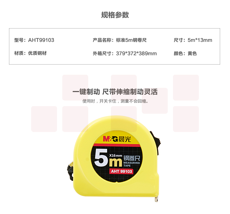 晨光(M&G)5米标准钢卷尺 外壳尺测量工具卷尺AHT99103 一包10个装