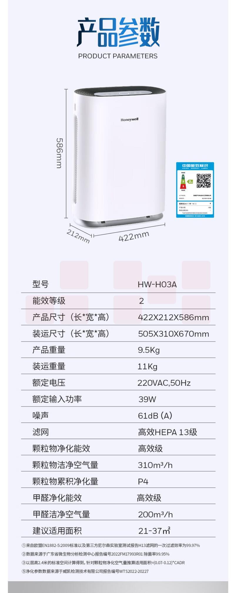 霍尼韦尔 空气净化器 分解除甲醛 除PM2.5二手烟除菌除异味 HW-H03A
