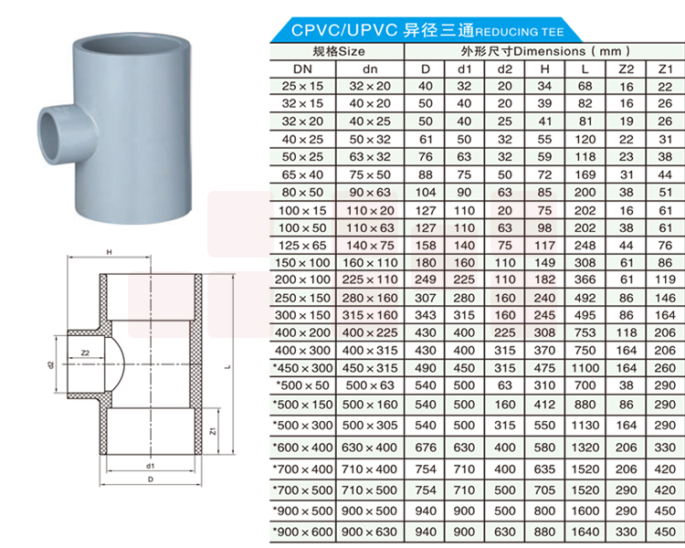 赣玛 异径三通 UPVC三通 50*25 异径三通灰色