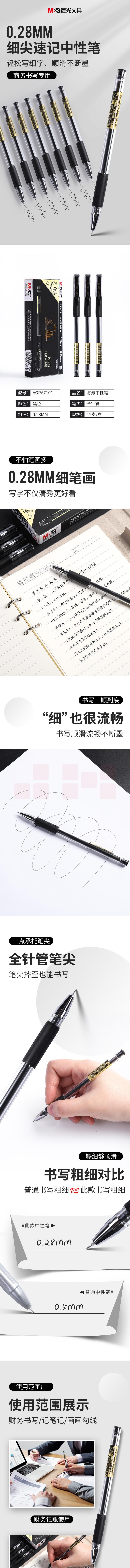 晨光 0.28mm黑色细水笔AGPA7101 中性水笔针管尖细笔 12支