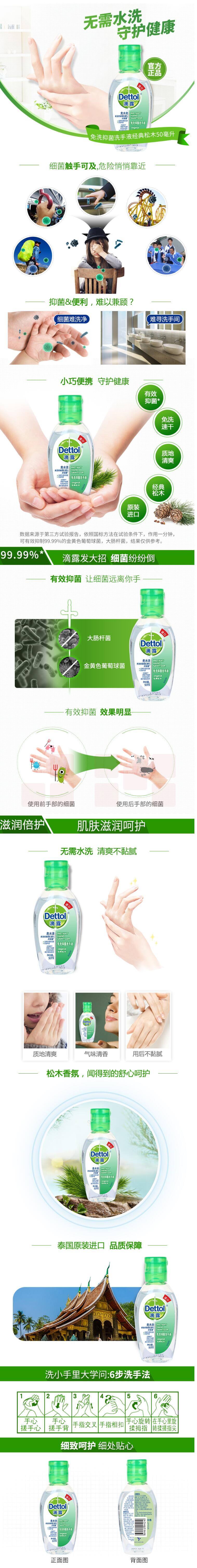 滴露(Dettol) 经典松木50ml 抑菌免洗洗手液 消毒凝胶
