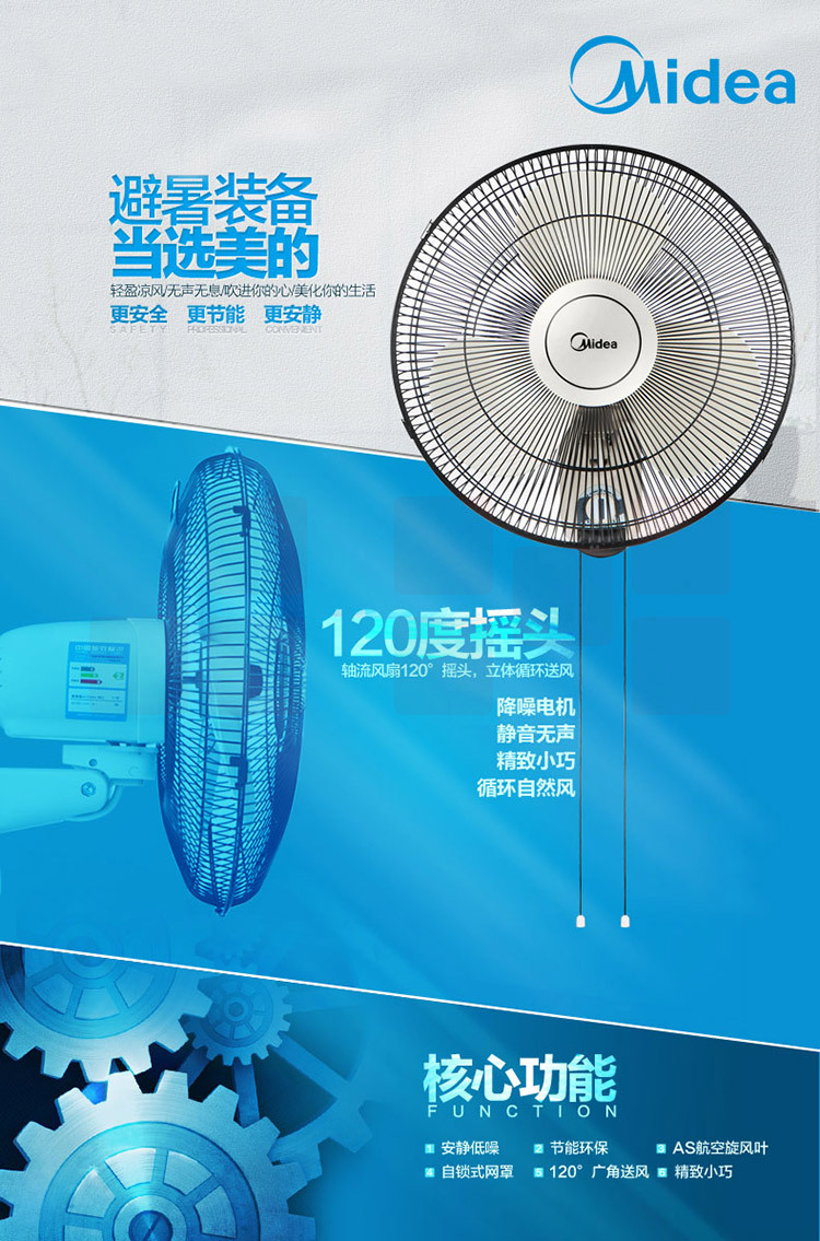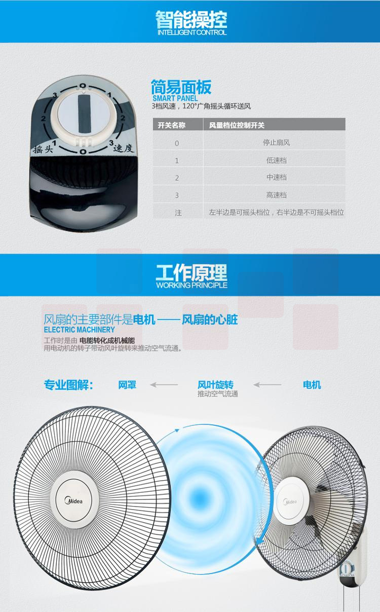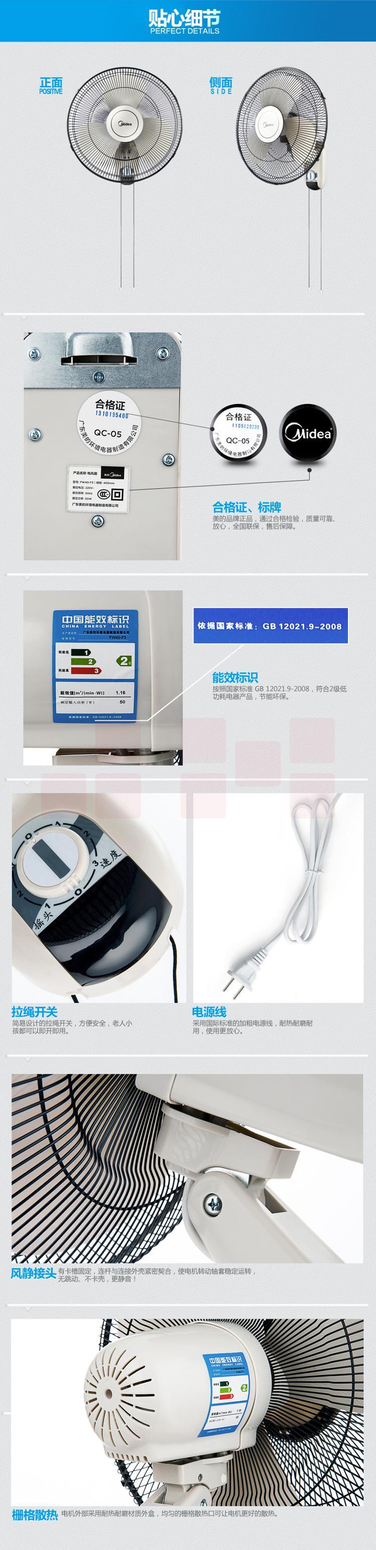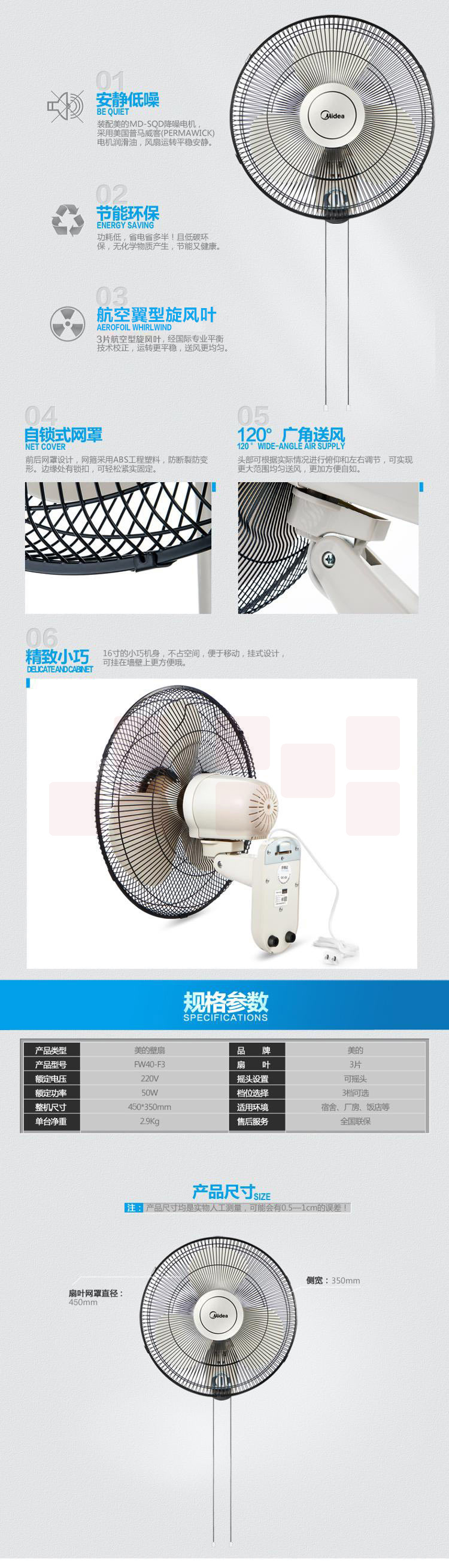 美的(16寸)FWA40YA电风扇 墙壁摇头扇 不含安装