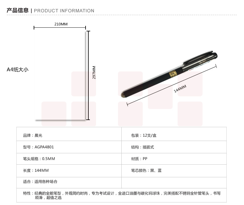 晨光0.5mm红色中性笔 全针管签字笔 拔盖碳素笔 12支/盒AGPA4801
