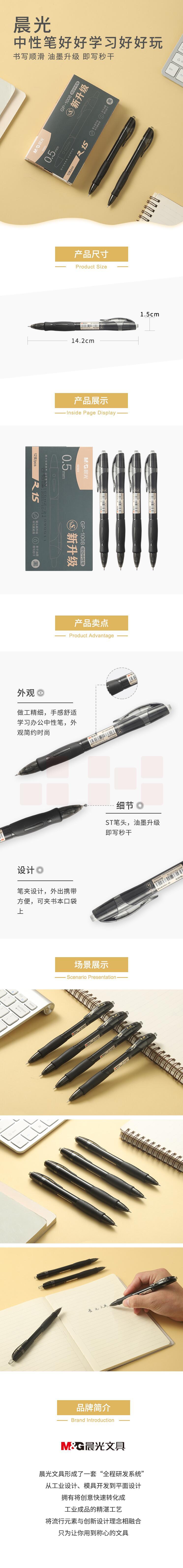 晨光 AGP02323按动中性笔st笔头速干碳素黑0.5mm黑色12支