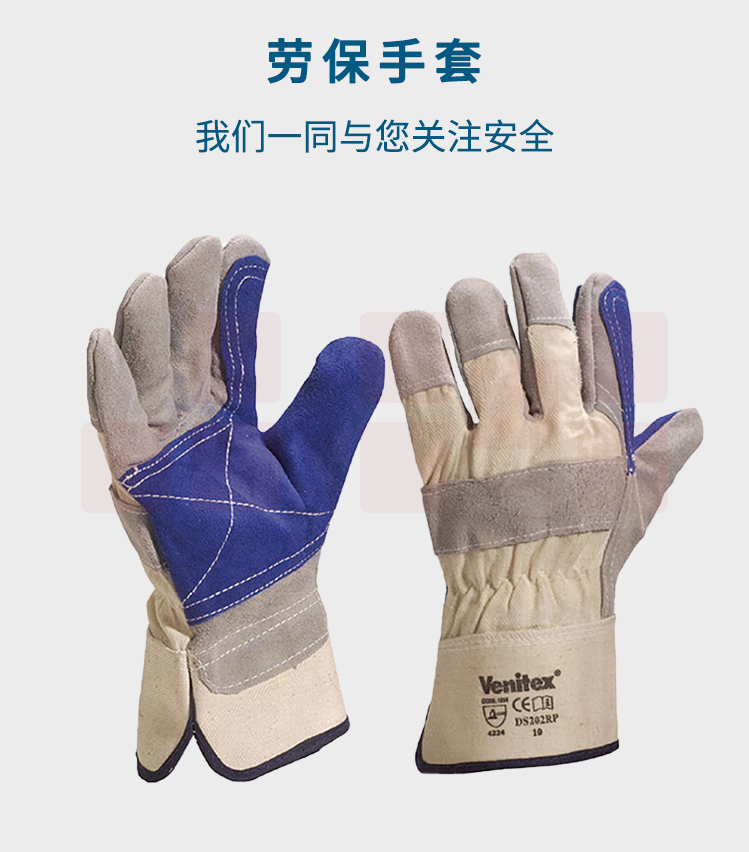 代尔塔 204202 双层牛皮手套 耐磨 防穿刺 帆布焊工作业劳保手套