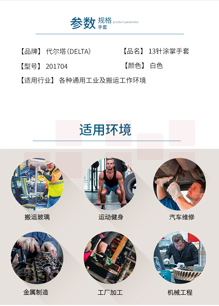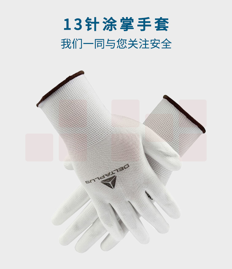 代尔塔 201704 PU精细操作手套 13针涂掌手套 掌背透气 弹性袖口