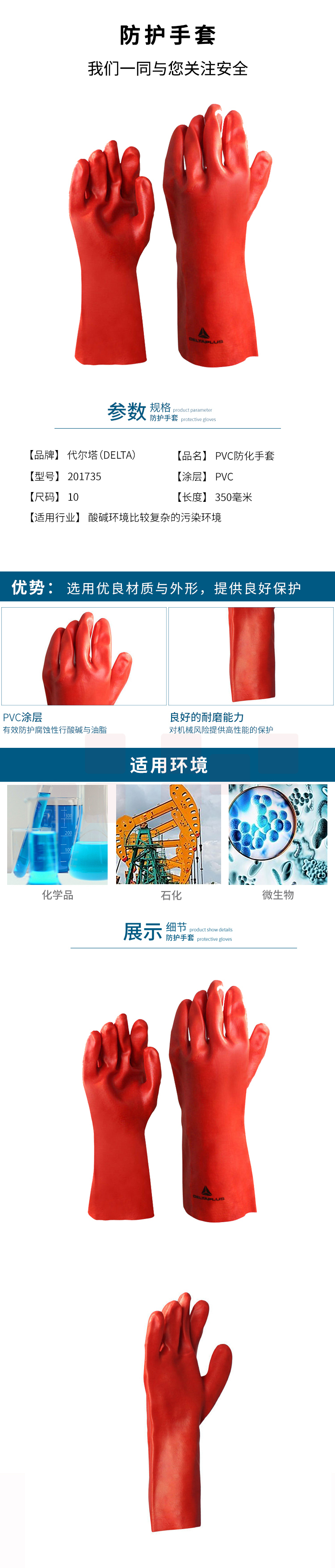 代尔塔 201735 硫化耐酸碱手套抗化学品溶剂手套植棉劳保手套