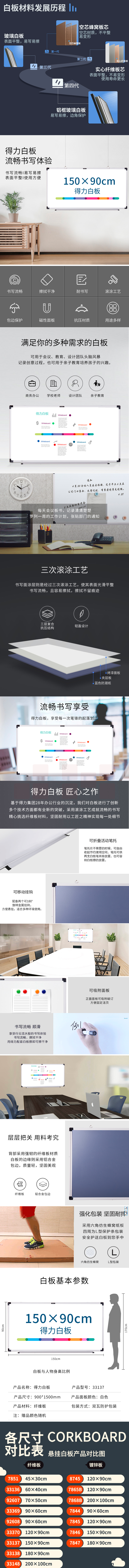 得力 150*90cm 悬挂白板 磁性白板 7856 (白)(块)