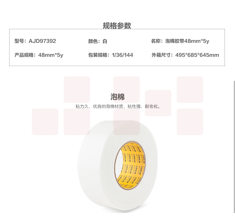 晨光双面泡棉胶带双面胶带48mm*5y(单卷)AJD97392