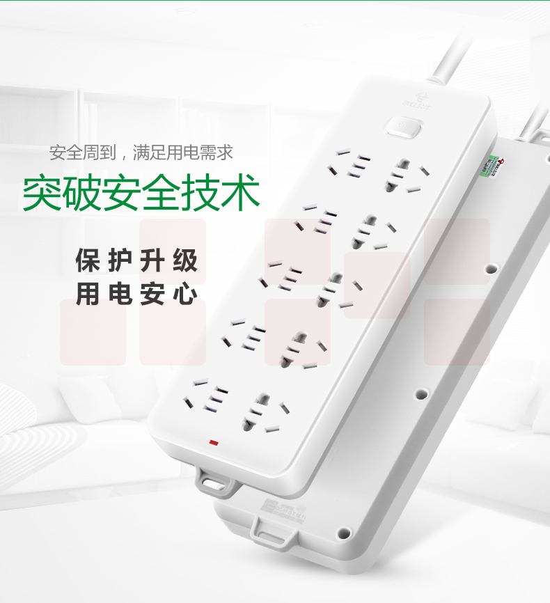 公牛 GN-218 10位总控 5米多位插座 超功率保护接线板插排