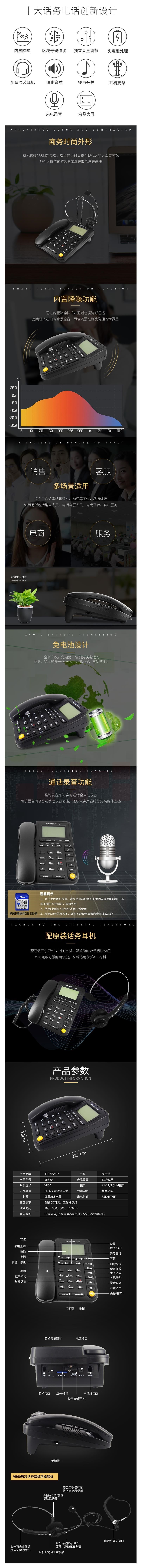 亚尔亚(YEY)VE820 SD卡录音耳机电话机 办公 通话自动双向录音 货号:TXH