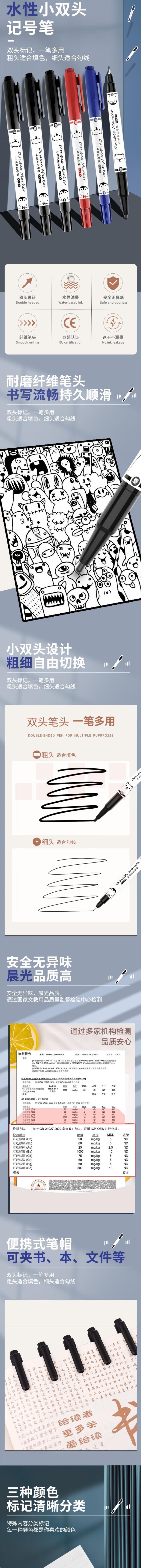 晨光 12支装 水性小双头记号笔APMU6201 红色