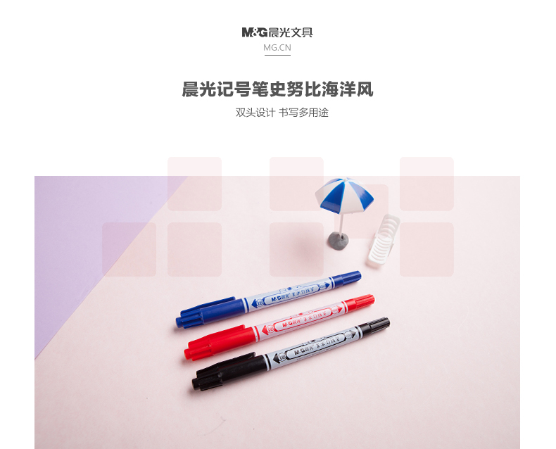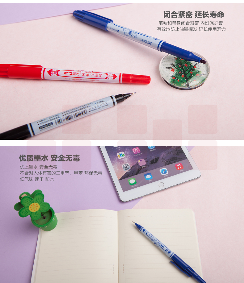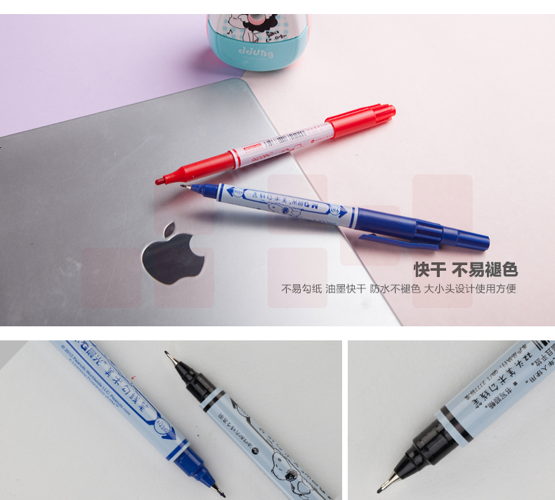 晨光 SPM21302 记号笔 12支 双头美术勾线笔 蓝色