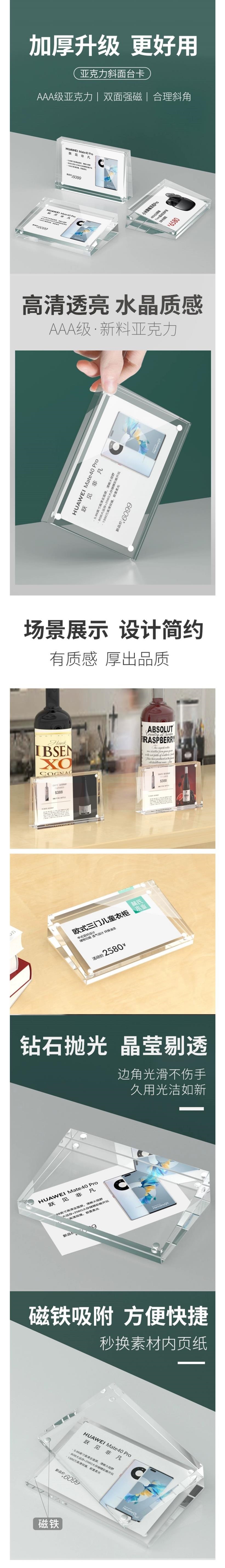 亚克力双斜面磁吸牌 水晶A型台 签标牌 55*90mm 厚度2mm 货号:JC