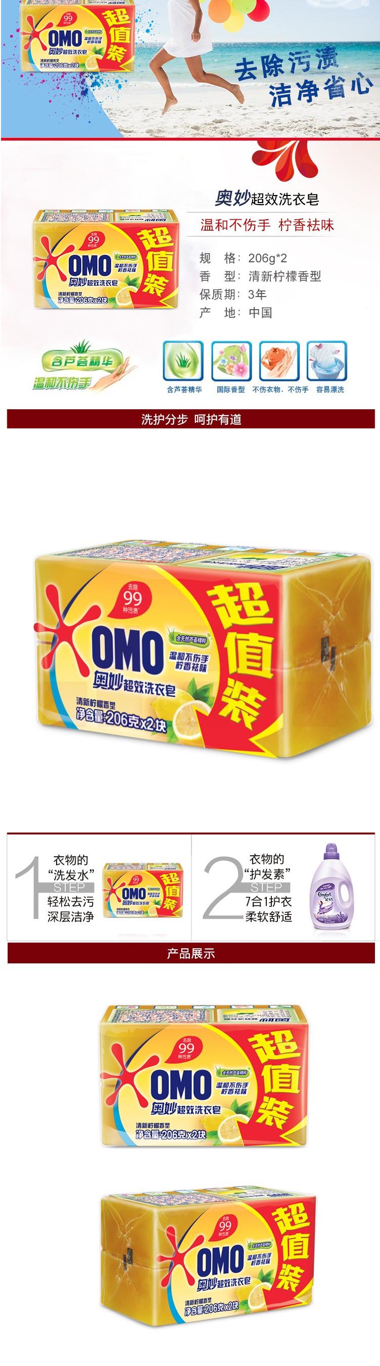奥妙 206g透明皂 超效洗衣皂 2块/组