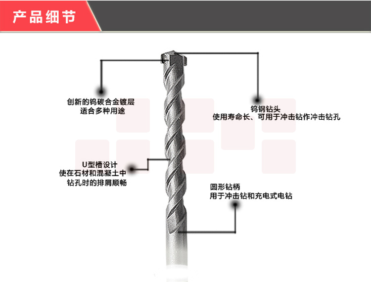 大地 12*120 冲击钻头水泥墙砖墙冲击钻圆柄钻头