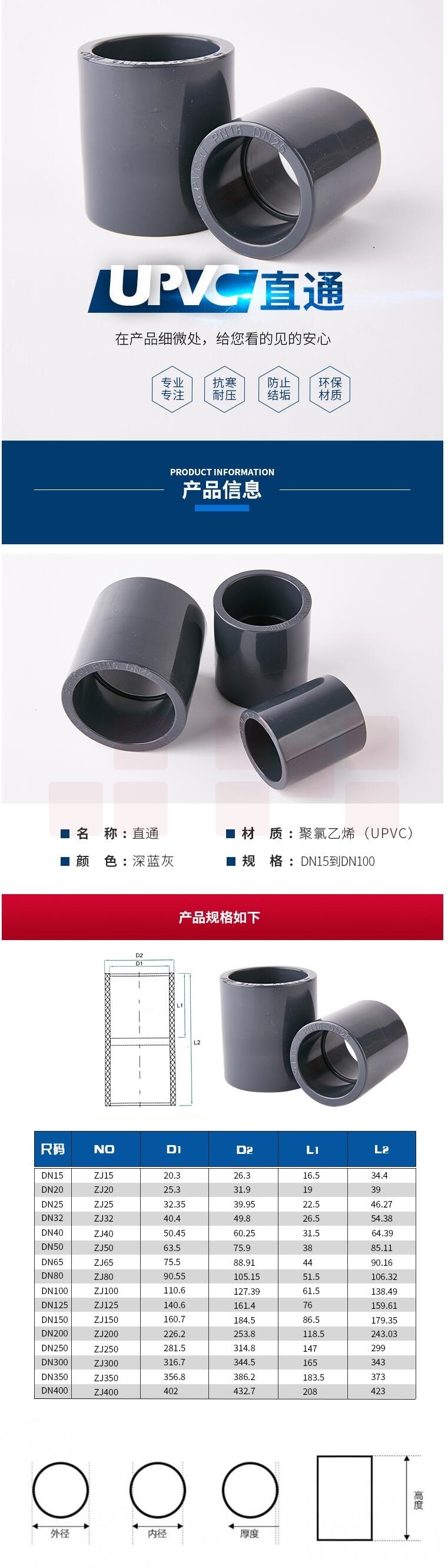 PVC-U直接 UPVC直通 UPVC管接头 63mm