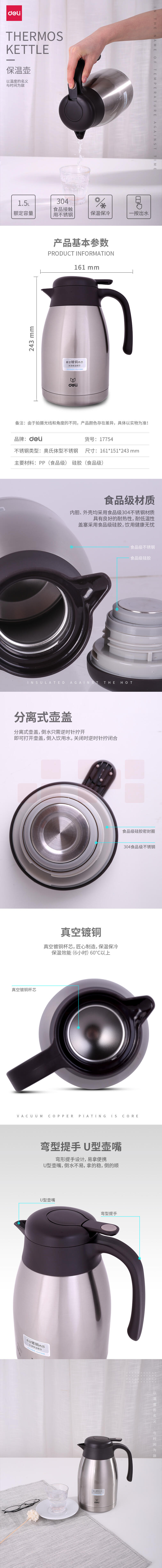 得力1.5L 保温壶不锈钢真空保温(本色)17754