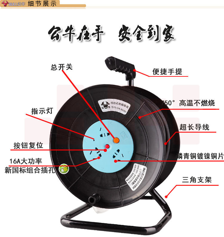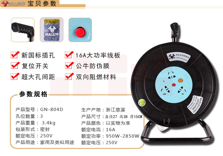 公牛(BULL)GN-8030 无线 移动电缆电线盘工地盘插