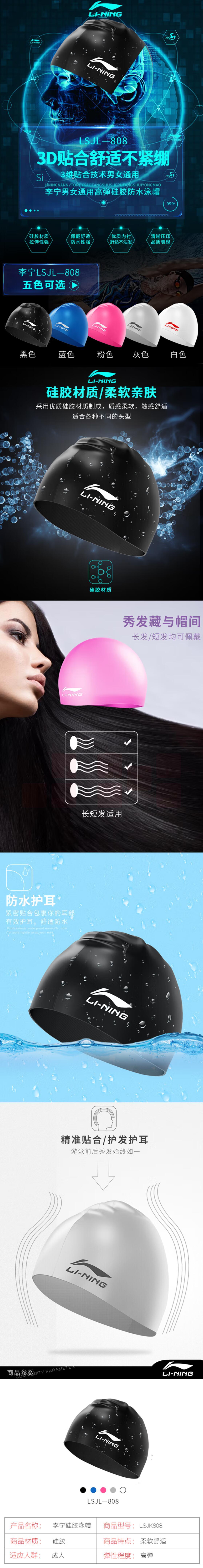 李宁 LI-NING 硅胶游泳帽 808黑色