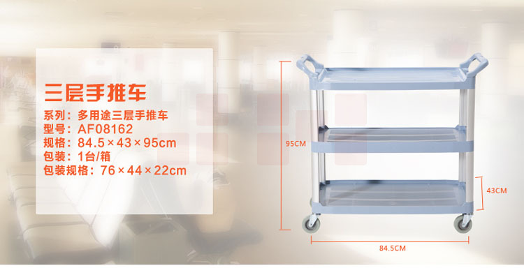 白云清洁 大号送餐车静音酒店三层酒水车小吃车手推车加厚餐车08161