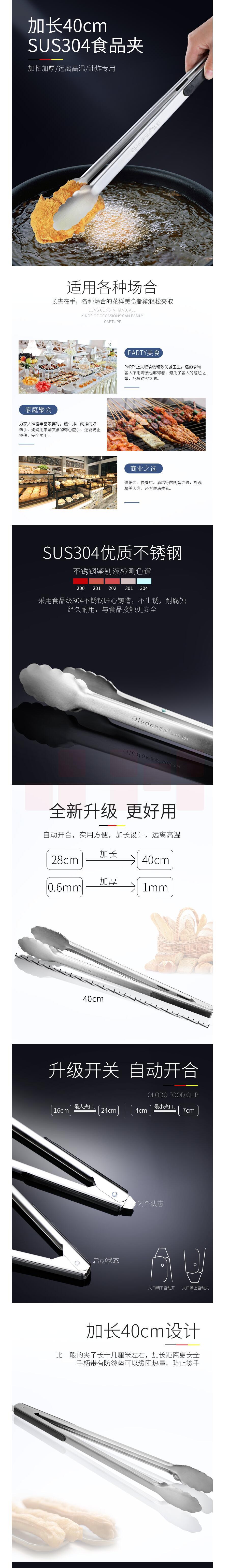 欧乐多 40cm加长食品夹子304不锈钢烤肉夹子 厨房油炸夹子 防烫食物夹
