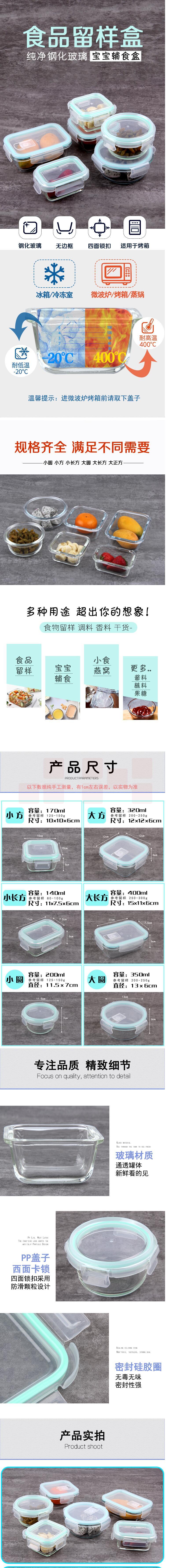 留样盒 玻璃带盖保鲜盒 饭盒 410ml
