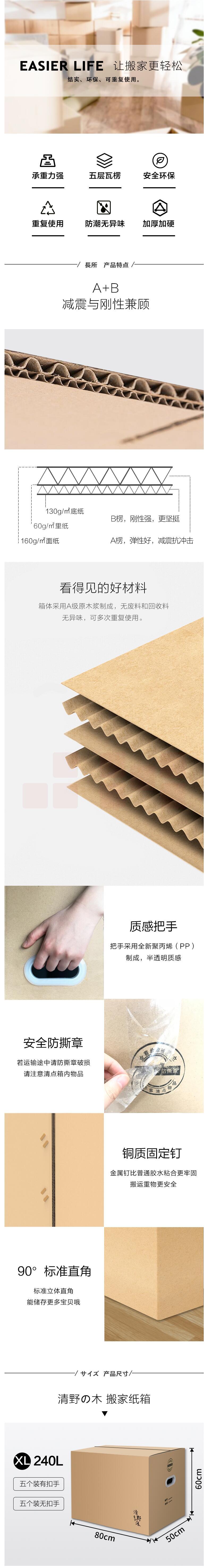 清野の木 大号搬家纸箱 有扣手五个/组 尺寸60*40*50cm