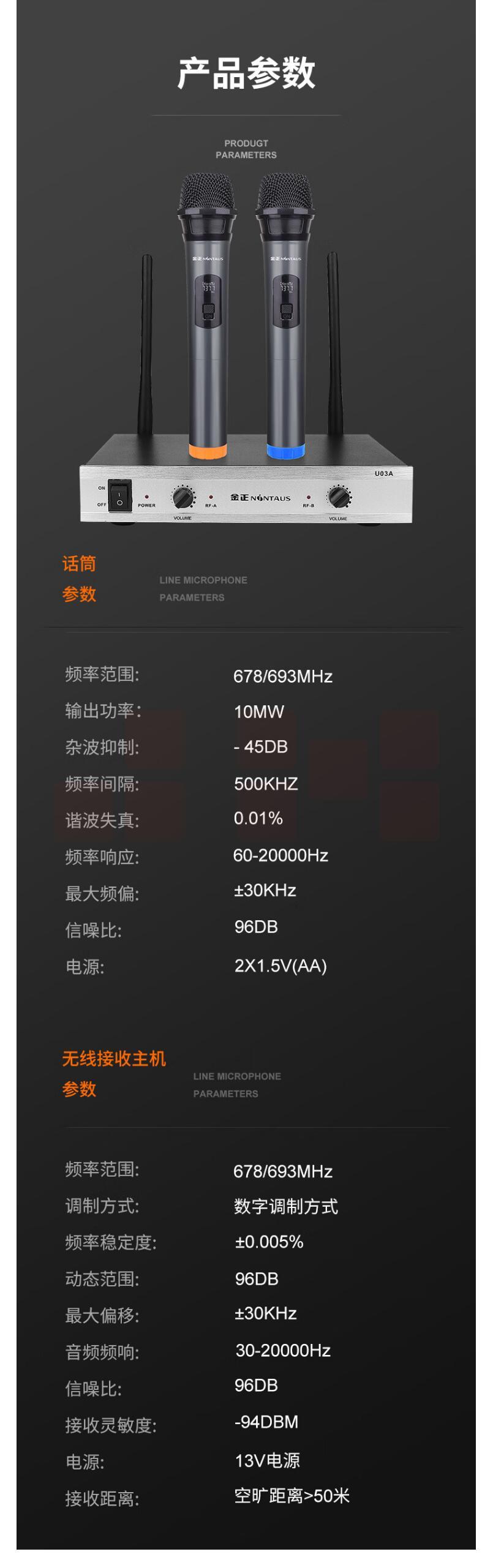 金正 U03无线话筒一拖二金属U段调频麦克风 货号:HXE