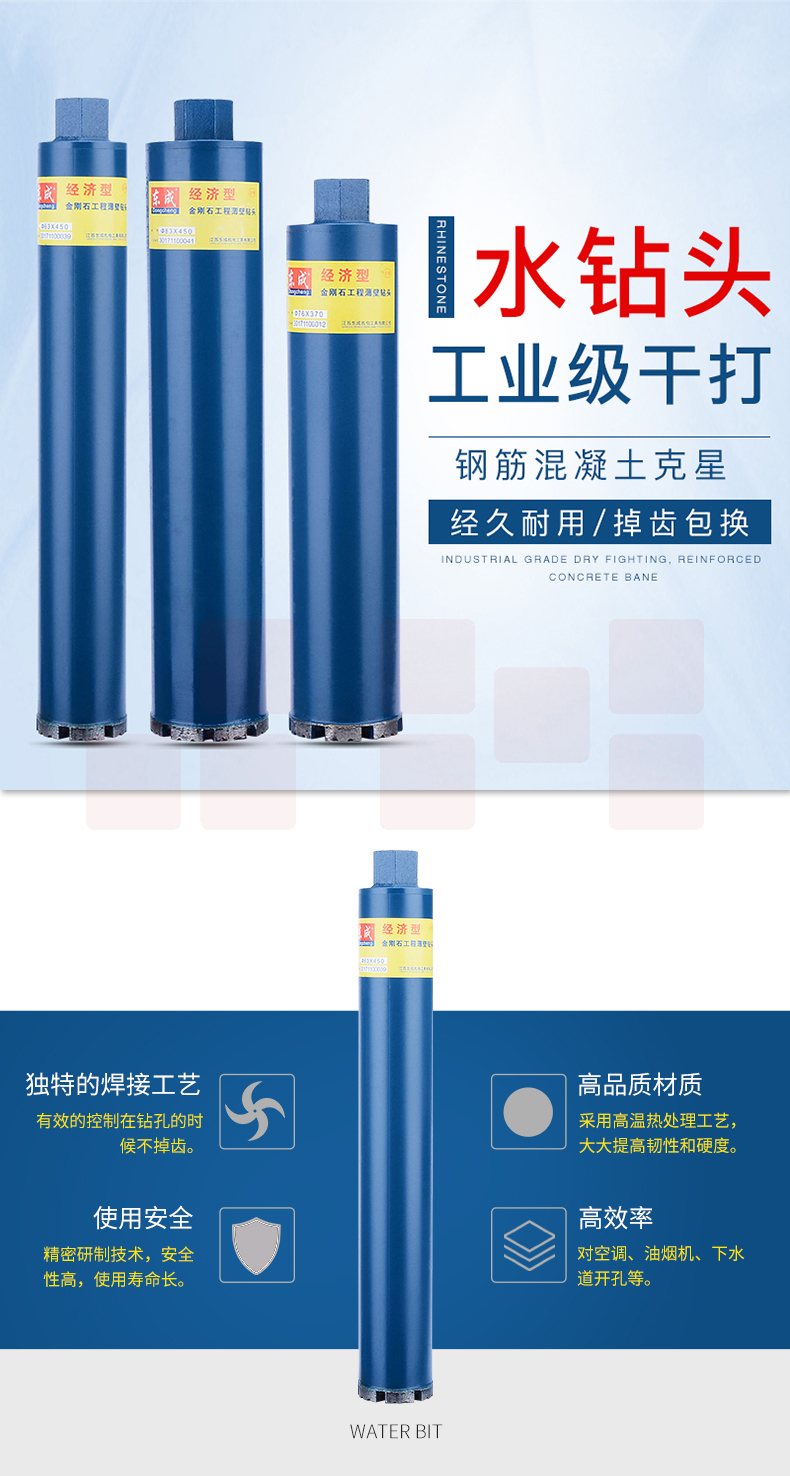 东成 金刚石工程薄壁钻头/水钻头/墙壁开孔器 总长度89*365mm