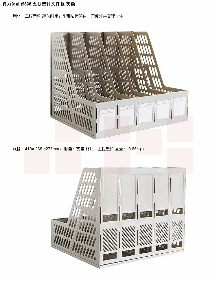 得力 9835 五联文件框 350*250*260 (单位:只) 灰白