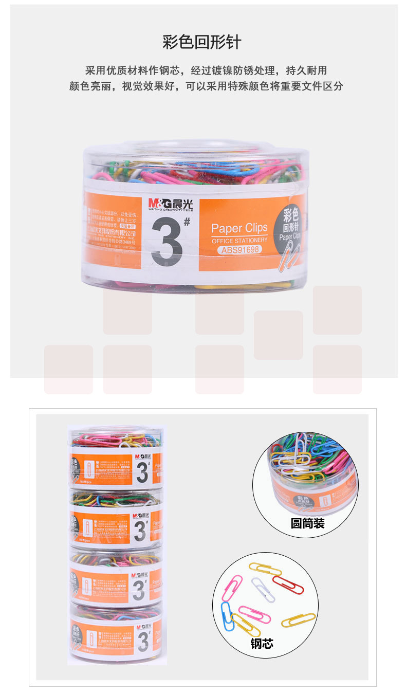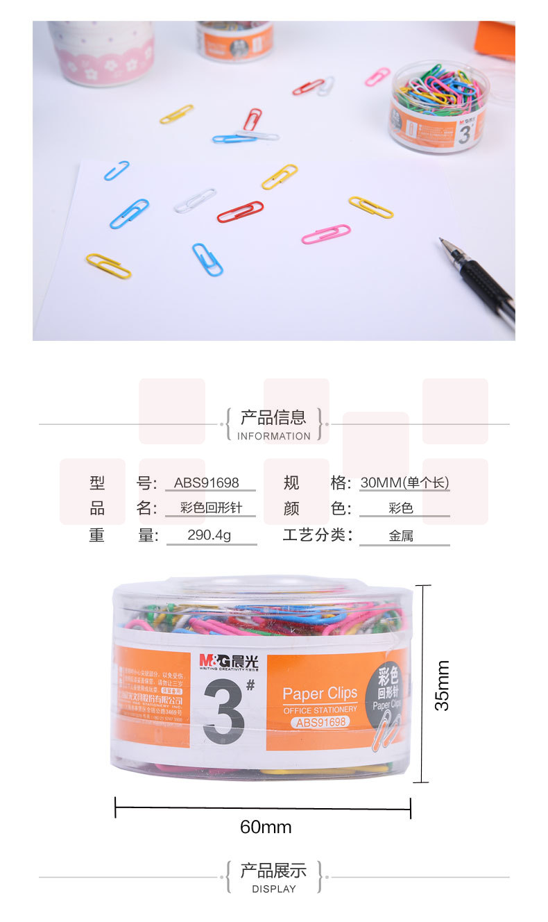 晨光(M&G)3号彩色回形针PVC盒装 曲别针办公用品ABS91698