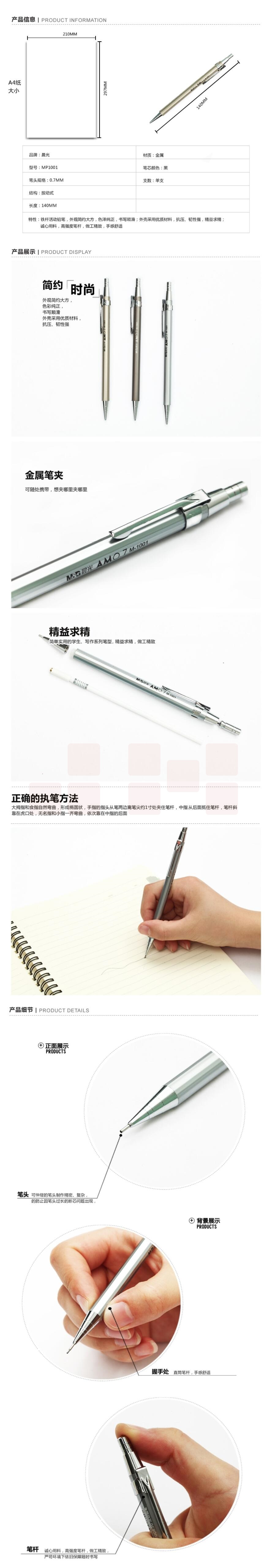 晨光 金属杆自动铅笔MP1001黑0.7mm 单支(36支/盒)