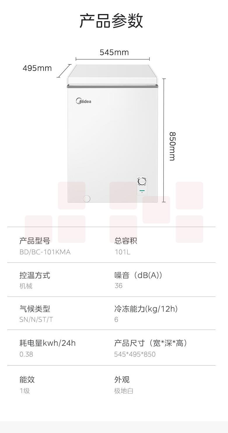 美的 冷柜顶开门101升 BD/BC-101KMA 极地白