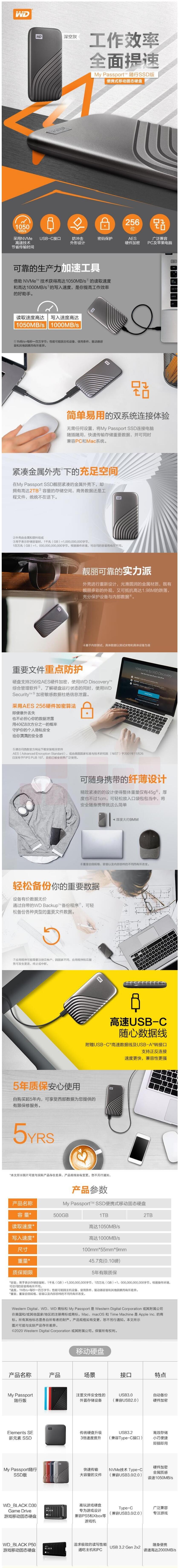 西部数据1TB NVMe 移动固态硬盘(PSSD) My Passport随行SSD版 深空灰
