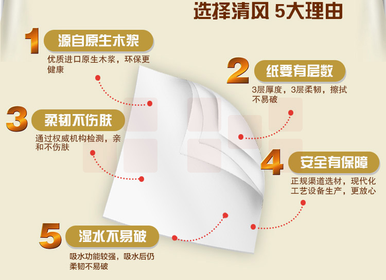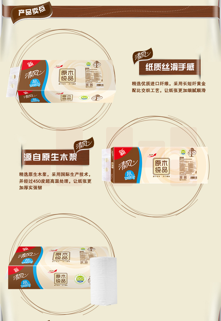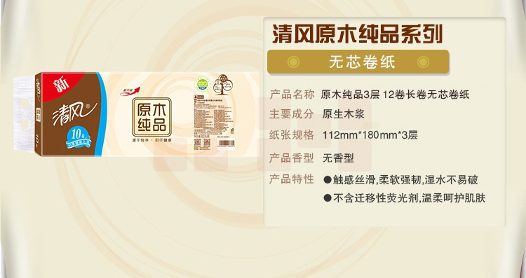 清风 原木纯品金装无芯卷纸 B01B9LCP 112*180mm三层 10+2卷/提