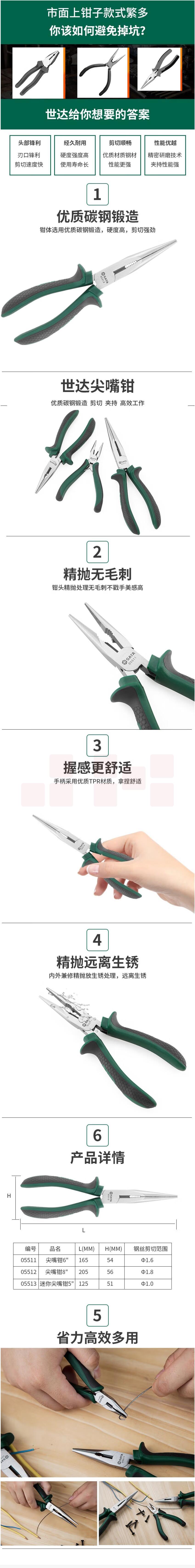 世达 05512 尖嘴钳8英寸多功能电工尖头钳子 尖嘴钳
