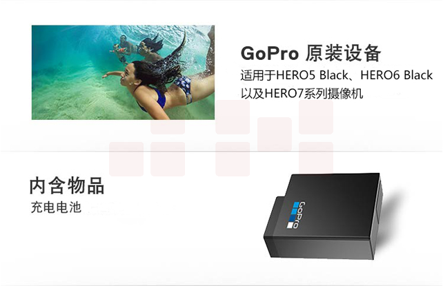 GoPro运动相机原装锂电池可充电电池 (适用于HERO5,HERO6 ,HERO7)