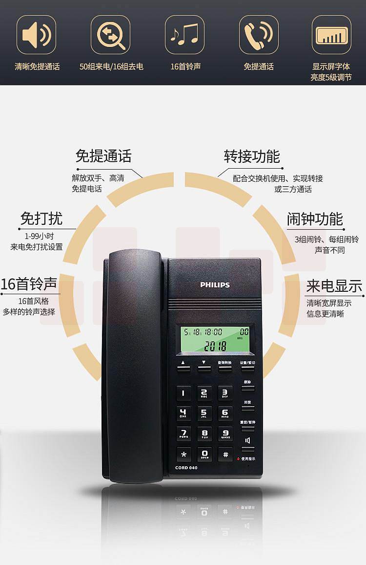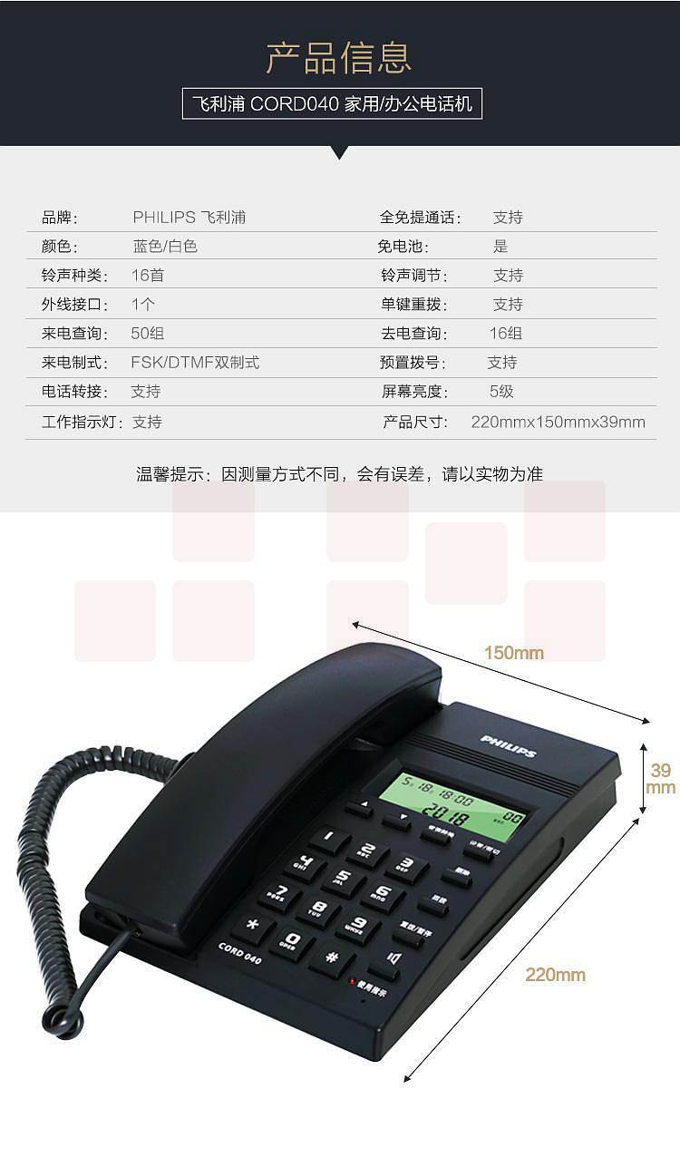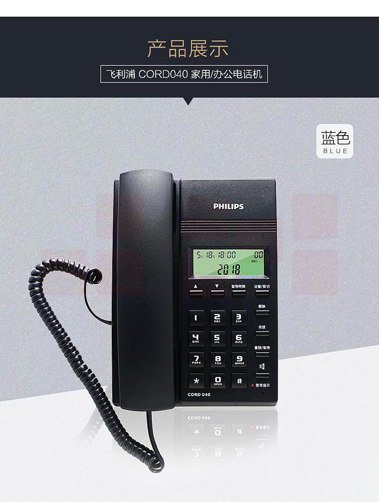 飞利浦CORD040普通电话机 蓝色(台)