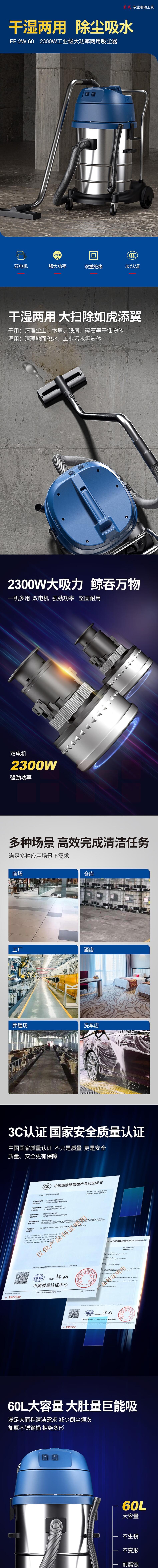 东成 FF-2W-60工业级大型干湿两用大功率吸尘器车用商用电动吸尘器