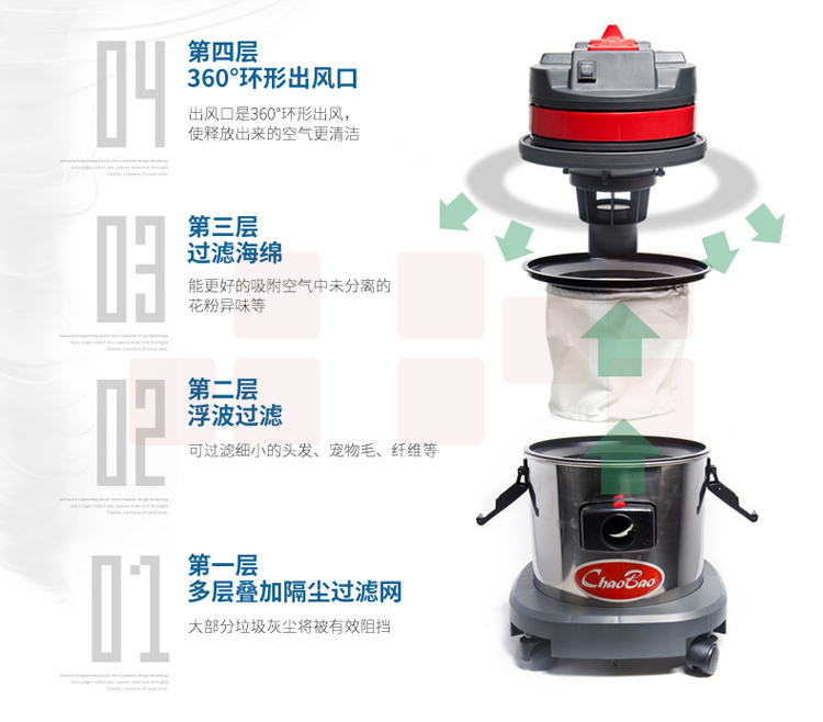 超宝(CHAOBAO)60L工业吸尘器吸水机不锈钢2000瓦