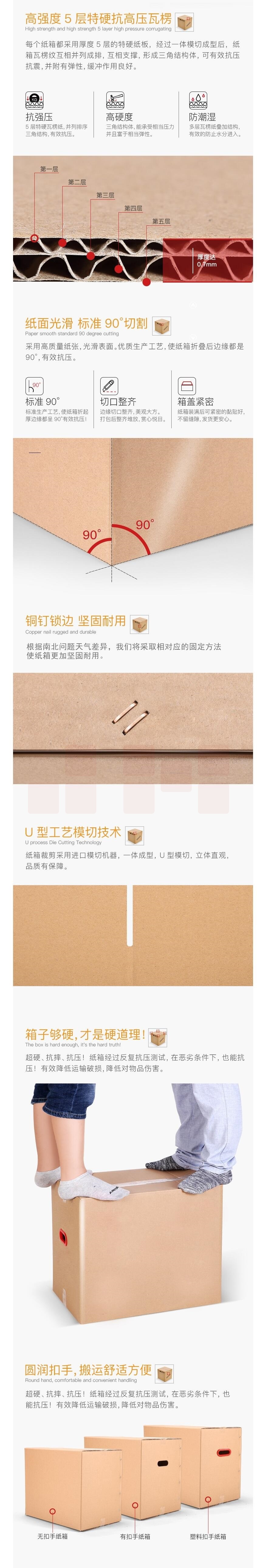 搬家纸箱子 纸壳箱五层特硬加厚搬家打包箱 100*50*50特硬(无扣手)