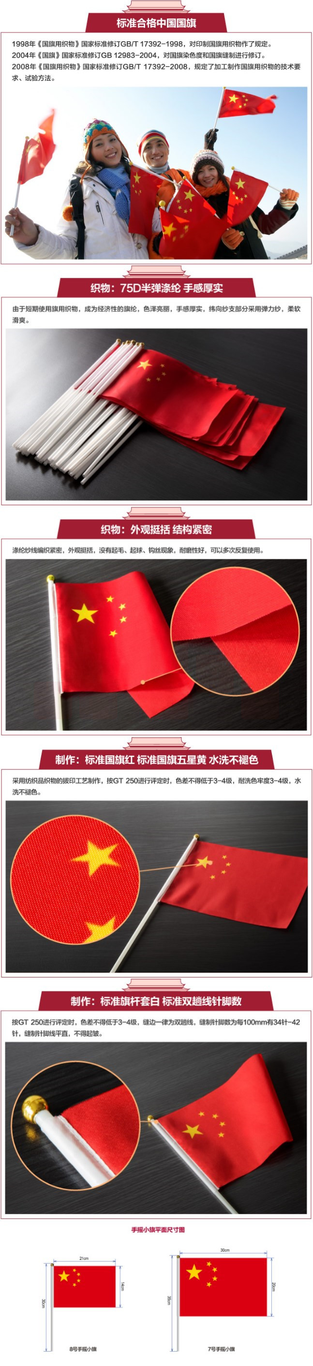 中国国旗 7号 20*30cm 手摇小旗 五星红旗 10面/包