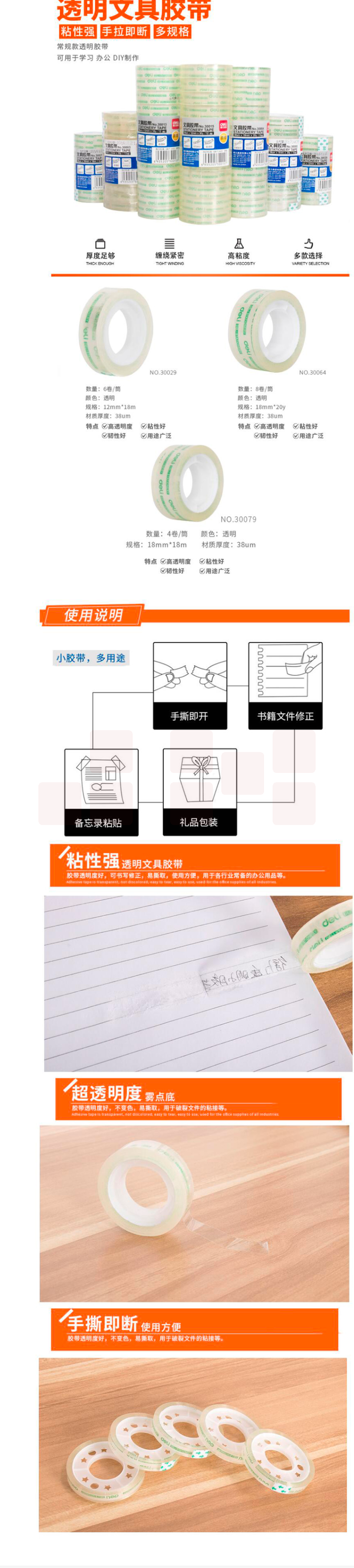 得力 30064透明 胶带 18mm*20y*38um 8卷装