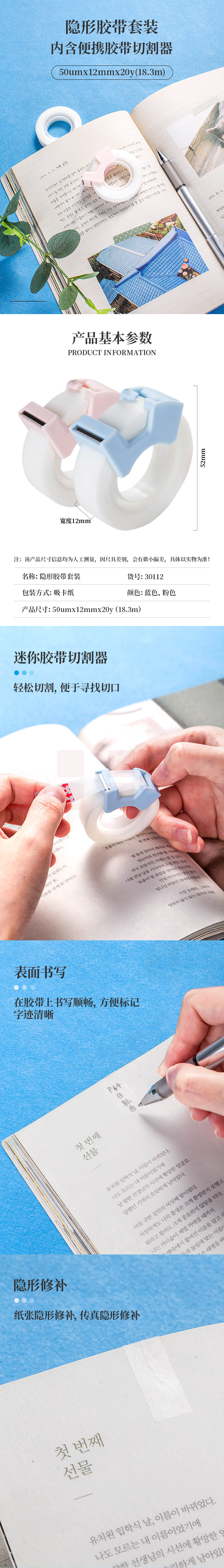 得力 修补胶带 易撕隐形胶带 附带切割器 12mm*20y 30112 2卷/卡