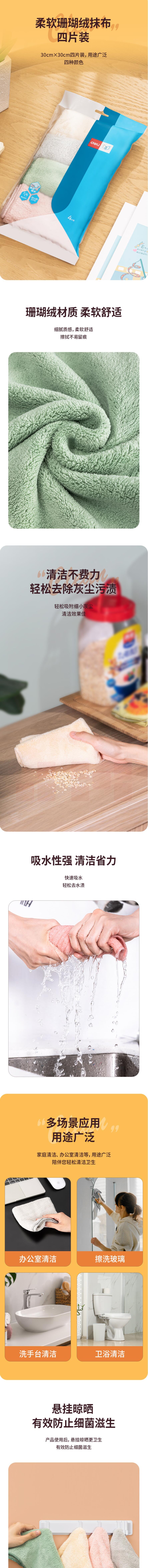 得力LQ391 珊瑚绒 抹布 30*30cm 4片装 四色混装