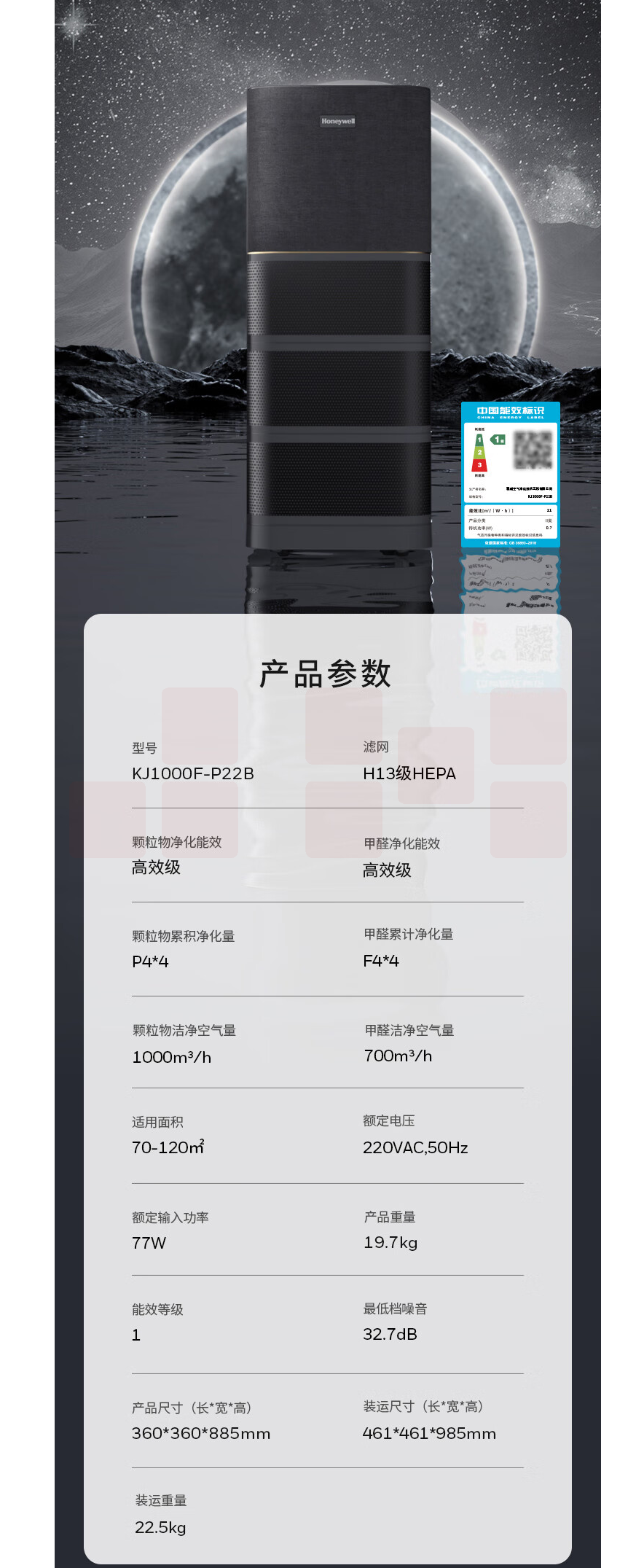 霍尼韦尔 空气净化器 除甲醛除异味细菌 KJ1000F-P22B