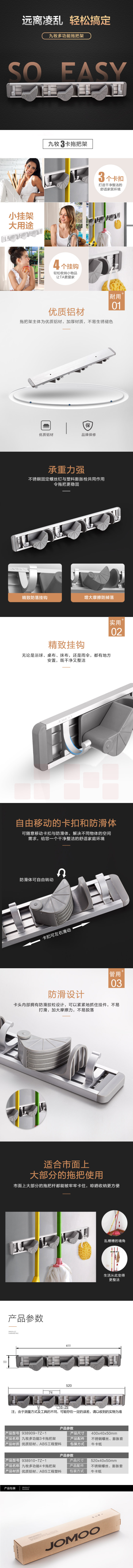 九牧 JOMOO 挂件太空铝挂钩3卡挂钩 壁挂多功能魔术拖把 挂钩
