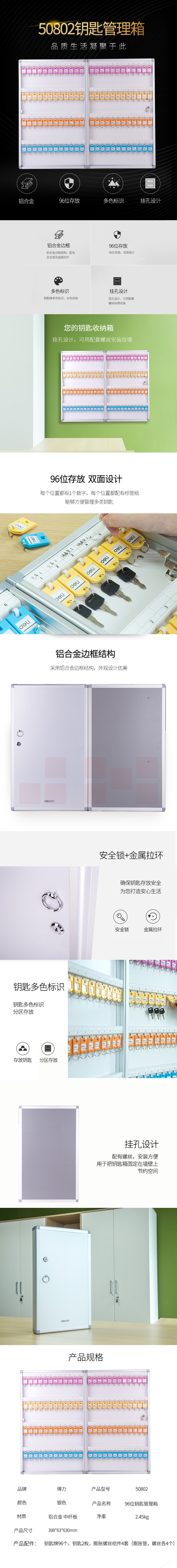 得力96位 铝合金钥匙管理箱(银)398*63*630mm(50802)