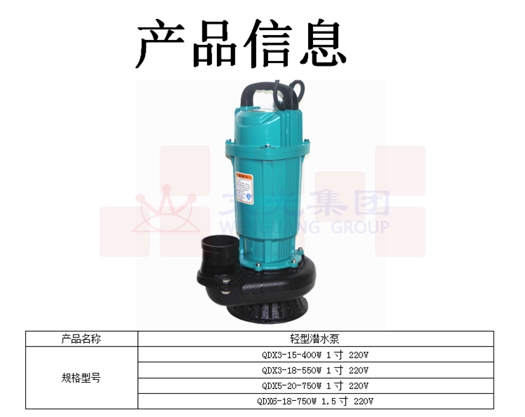 上海人民 QDX5-20-750W 1寸 220V 轻型潜水泵